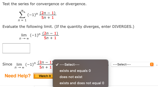 In other words if the limit of the nth term doesnt equal. Take the limit of the series given and use the Divergence Test in identifying if the series is divergent or convergent. Geometric Series 1 1 n arn is convergent if r divergent if r 1 p-Series 1 1 n np is convergent if p 1 divergent if p 1 Example.
