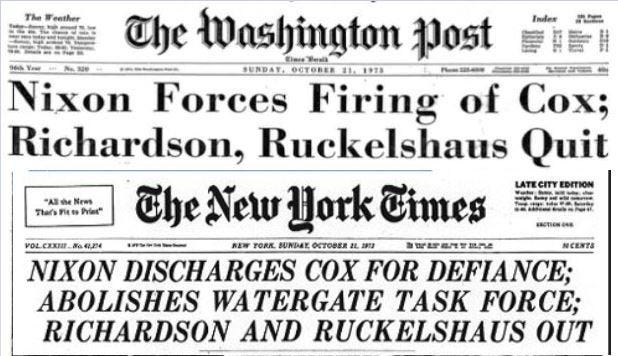 Nixon Discharges Cox For Defiance Abolishes Watergate Task Force Richardson And Ruckelshaus Out